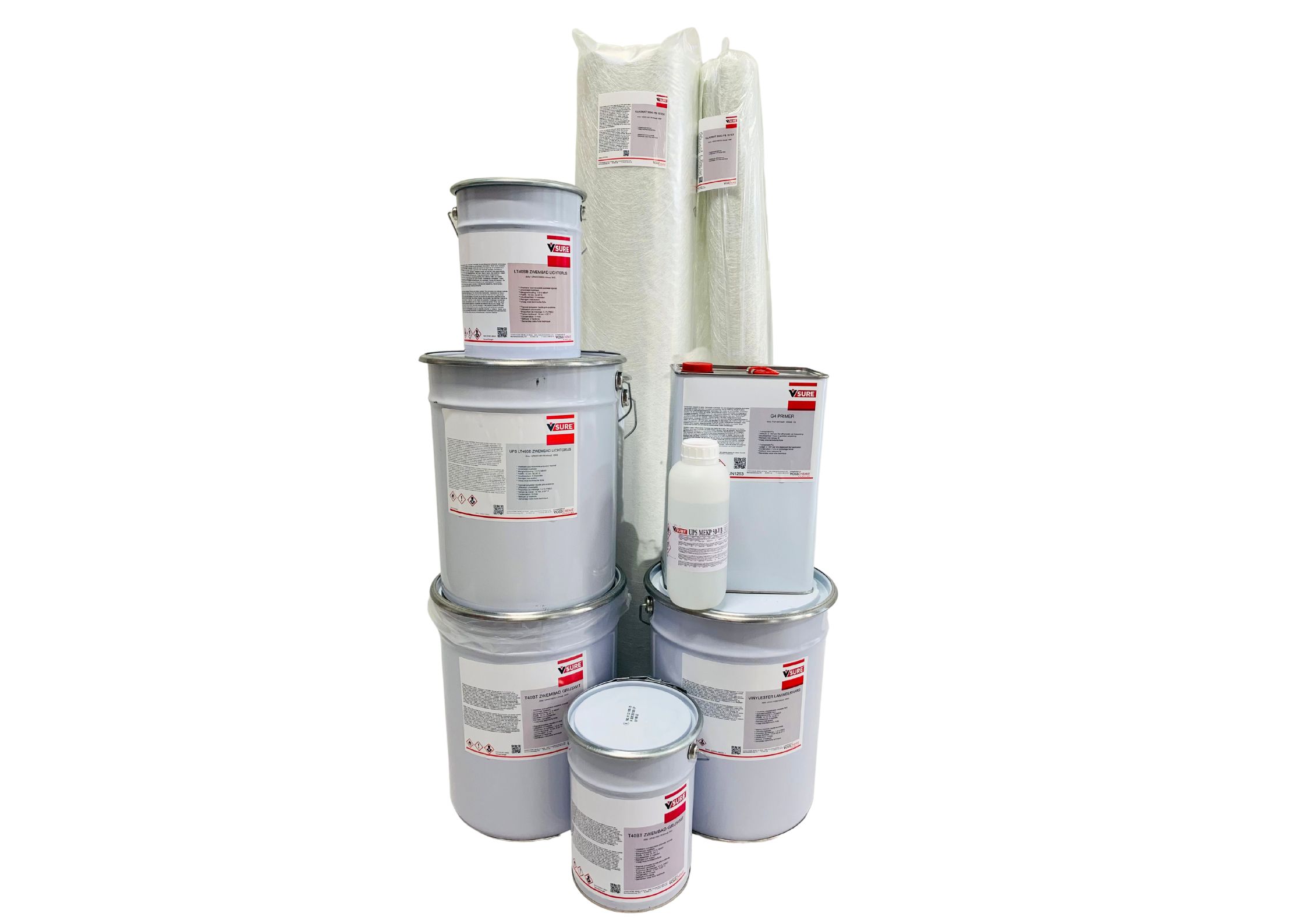 In deze set vind je alle producten voor het zelf aanleggen van een zwembad in glasvezel versterkt polyester.